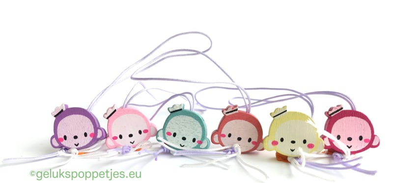 Schattige geluks aapekopjes in pastellfarben. Diese handgemalten Gelplatten sind auf 22 x 18 mm ausgelegt und für das Stück in verschiedenen Farben erhältlich.