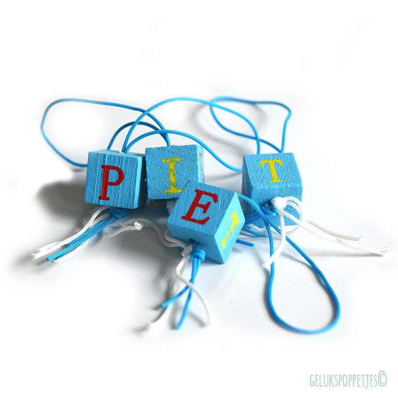 Leuke Geluksblokjes mit den Briefen PIET, für einen Kader von Kaartje bei den Sinterklaas-Gebühren. Diese Sperrblöcke sind nur 15 mm groß.