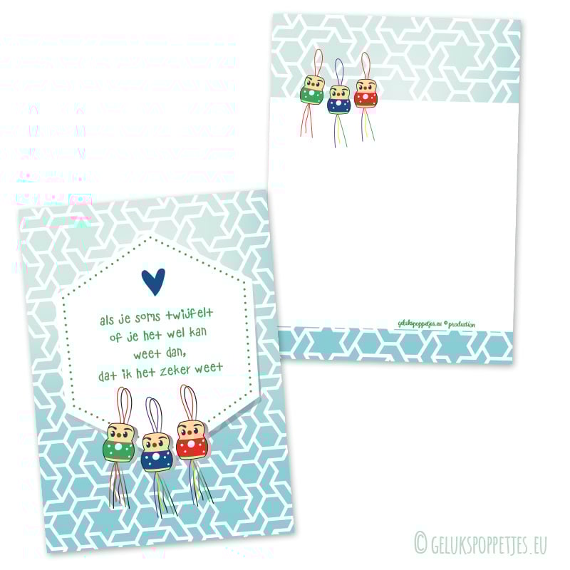 Als ich zwiebelte... Gelukspoppetjes-Karte mit dem Bild von den „outerwetse“ Gelukspoppetjes erop. Wir wissen nicht, dass es sich bei der Bestellung um einen echten Hingucker handelt, bei dem ein Kunde ihn verwenden kann.