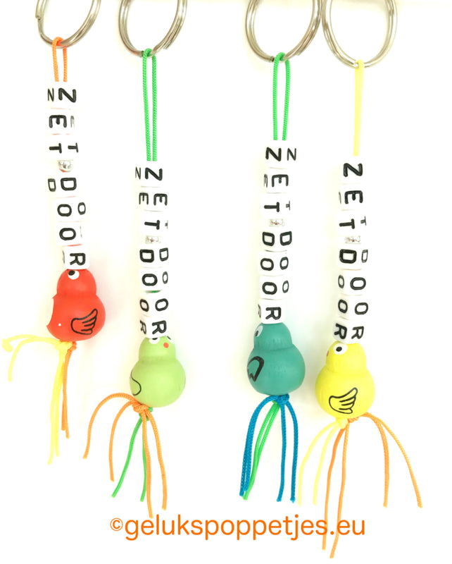 Der Sleutelhanger hat eine Tür mit gelukspoppetje vogeltje